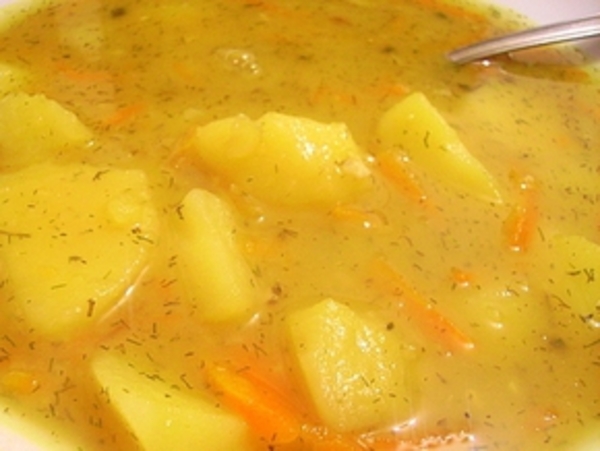 Не доводя до готовности положить нашинкованные лук, морковь, картофель. Довести до готовности, добавив масло, лавровый лист, зелень.