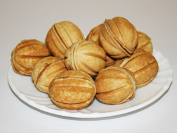 Половинки "орешков" наполнить вареной сгущенкой и скрепить.