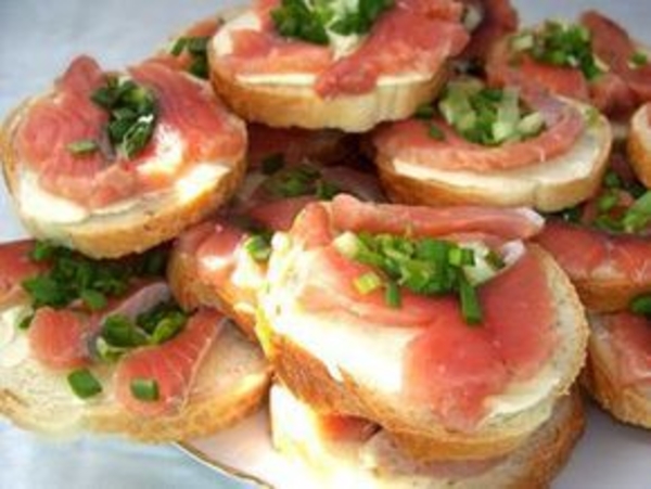 Намажьте ломтики батона сливочным маслом. На каждый уложите по ломтику лимона, немного икры и и рыбы.