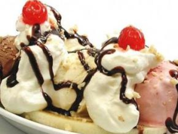 В лодочку налить ванильный соус, в который можно добавить ром, бренди, молочный ликер (любой ароматный алкоголь), сверху положить 2-3 шарика мороженого.