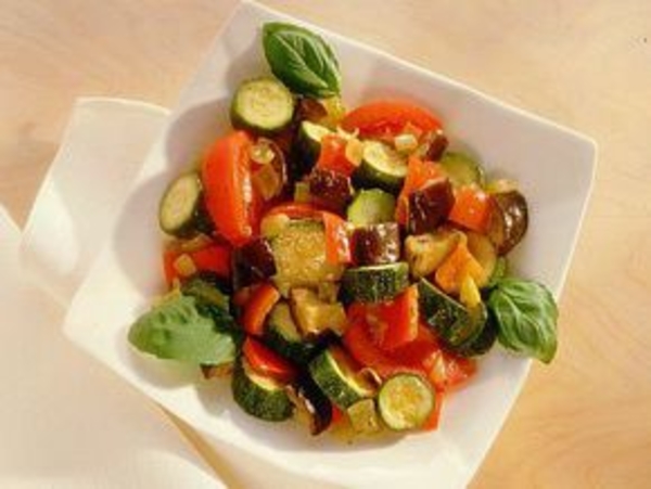 Накрыть сковороду крышкой, уменьшить огонь и тушить рататуй еще минут 20. К блюду можно подать жареное мясо, белый хлеб и красное вино.