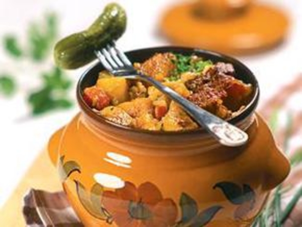Гуся положить в горшочки, добавить овощи, посолить по вкусу, залить водой или бульоном.