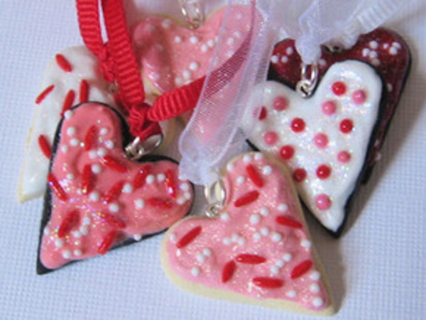 Разогреть духовку до 180 гр С. Смазать два противня маслом. Раскатать тесто на поверхности, посыпанной мукой до толщины 5 мм. Вырезать маленькие сердечки с помощью формочки диаметром 2.5 см. Переложить сердечки на противень и равномерно их разложить.