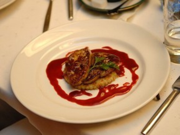 Печень разрезать на куски, посолить и поперчить. Обжарить быстро с двух сторон на хорошо разогретой сковороде с антипригарным покрытием без добавления жира.