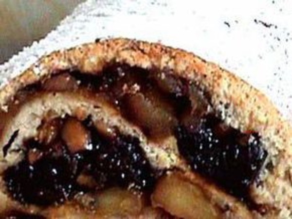Мускатный орех натереть на терке. Все тщательно перемешать. Тесто раскатать, смазать растительным жиром, положить начинку и свернуть. Полученный рулет уложить в форме спирали, смазать взбитым яйцом и испечь при температуре 200 - 220 градусов течении 15 - 20 минут.