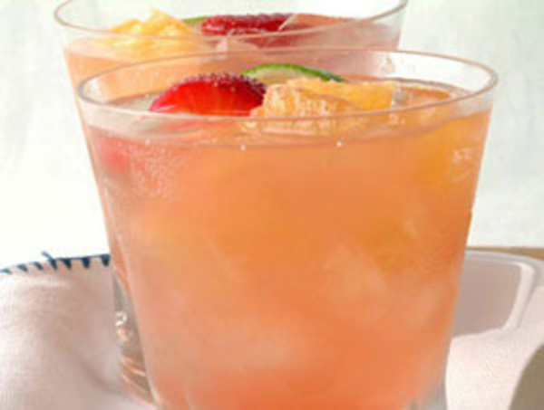 В остывшую массу положить бананы, которые предварительно надо очистить и порезать тонкими кружочками, туда же влить 1 бутылку бананового ликера, накрыть кастрюлю крышкой и поставить на 1 сутки на холод. Перед подачей залить 3 бутылками белого вина типа рислинг и бутылкой шампанского.