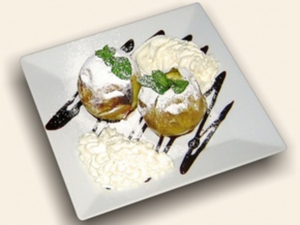 Подавайте со сливками и сахарной пудрой.