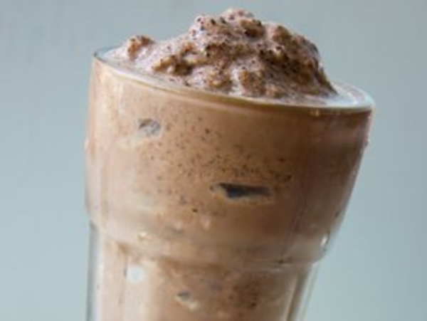 Желток, сироп, молоко и 50 г мороженого взбивать миксером около 1 минуты. В высокий бокал выложить 2 шарика мороженого и залить коктейлем.