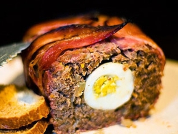 Сверху мясной рулет смазать сливочным маслом (или водой) и запекать в духовке при температуре 160°C около часа, все время поливая его выделившимся мясным соком.