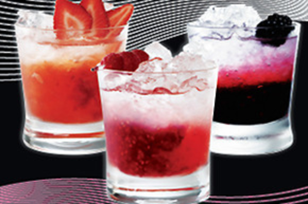 Положить в кухонный комбайн по 50 г черники, малины и клубники, добавить 2 ч л сахара и 1 ст л сока лайма. Взбивать 30 сек, перелить в шейкер со льдом и 60 мл черносмородиновой водки. Встряхивать 1 мин.