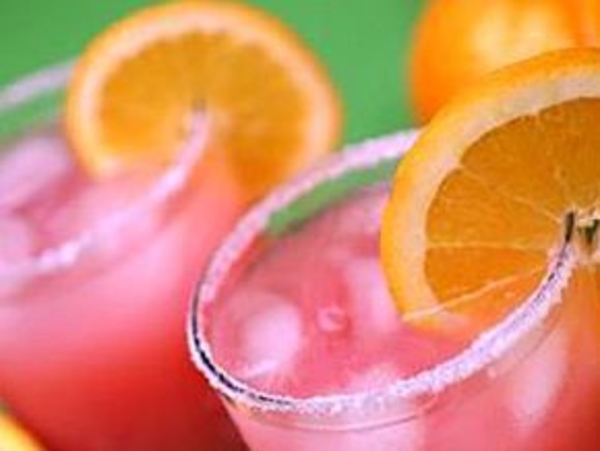 Пропустите лёд в миксере вместе с клубникой и апельсиновым соком.