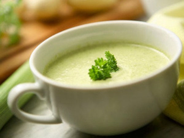 Охладить и пропустить через сито или взбить в блендере. Перелить в большую супницу, добавить сливки, перемешать и приправить солью и перцем. Охладить.