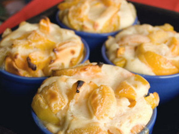 Обмазать маслом 6 порционных формочек для духовки или одну форму на 1.4 литра.