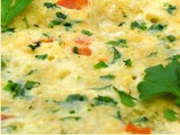 Перед подачей положите на омлет обжаренный лук и оформите зеленью. Можно посыпать омлет тертым сыром.