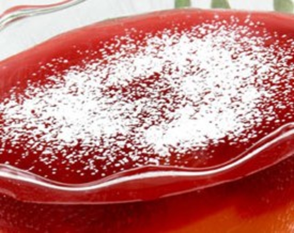 Соки по отдельности доведите до кипения, соедините с сахаром и также влейте в каждый сок по 1/3 стакана крахмала, доведите смесь до кипения, охладите.