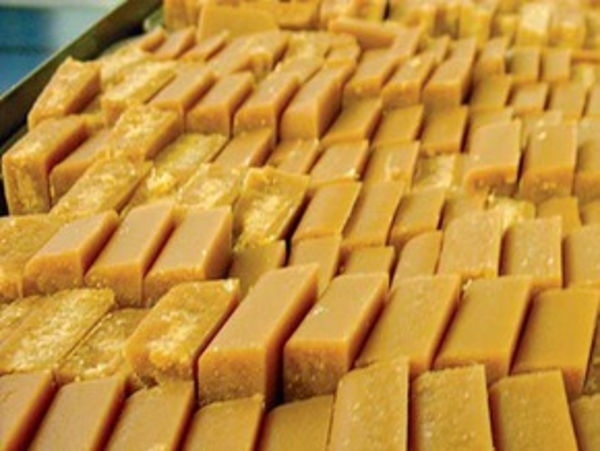 Перелить в подготовленную форму и дать слегка остыть. Затем начертить на поверхности 30 кусочков (так легче будет потом порезать). Дать остыть перед тем как разрезать и подавать. Таблет должен быть мягковатым, а не твердым, как кирпич, а также должен крошиться слегка, когда его режут.