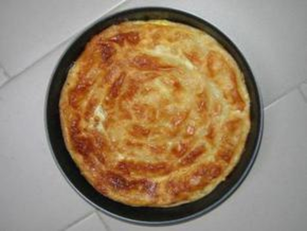 Взбить яйца со сливочным маслом, молоком и солью и залить этой смесью хлеб. Выпечь баницу в горячей духовке.