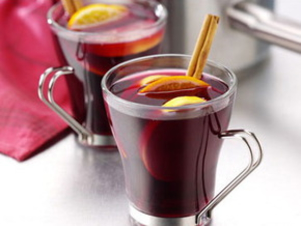 Подавать сразу же в огнеупорных стаканах, апельсин и корицу можно оставить.