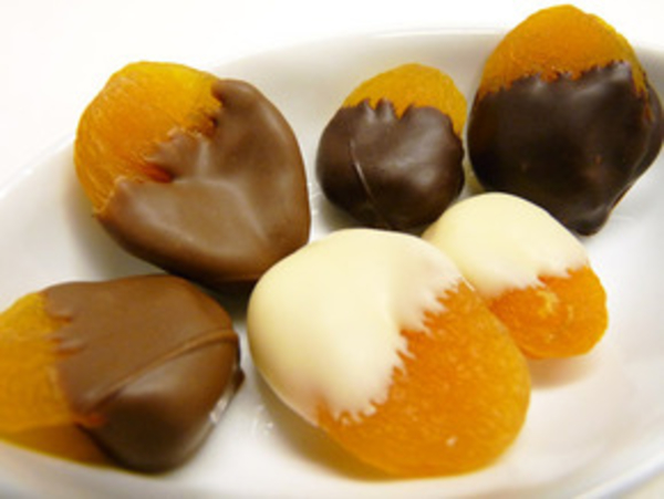 Курагу промыть, окунуть в шоколад и сразу же положить на противень. Поставить готовый противень с курагой в морозилку на 30 минут.