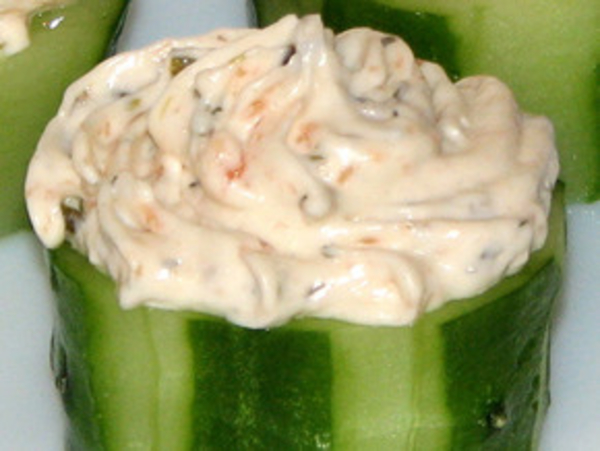 С помощью блендера смешать сливочный сыр, семгу, сметану, поперчить. Получившимся муссом наполнить огурцы используя кондитерский шприц.