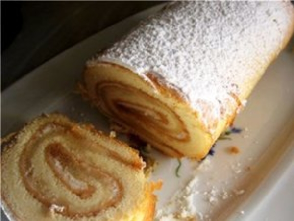 Вынуть готовый корж из духовки и сразу смазать начинкой и свернуть еще горячим. Иначе корж будет ломаться и трудно будет его скрутить.