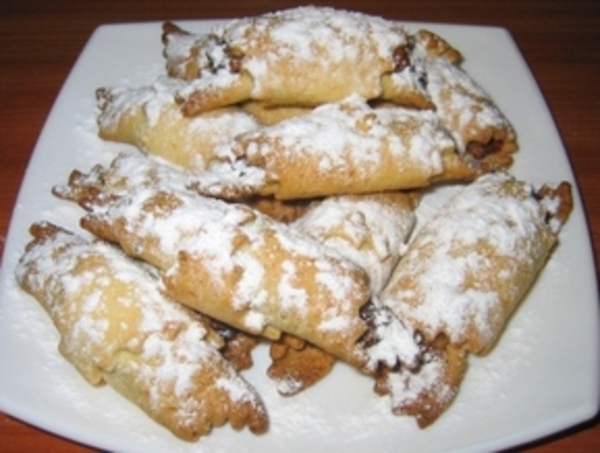 4. Укладываем рогалики на противень застеленный пергаментом и выпекаем при 210 градусах до золотистого цвета.
