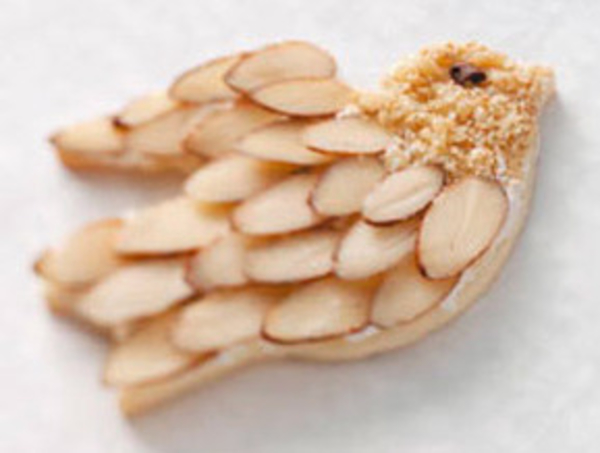 Слегка взбить 1 белок, смазать голубок кисточкой и посыпать сахарной крошкой. Выпекать 30 минут при 180 градусах.