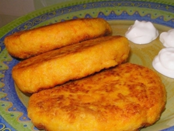 Сформируйте продолговатую котлету, обваляйте в муке. Таким же образом подготовьте остальные морковные котлеты.