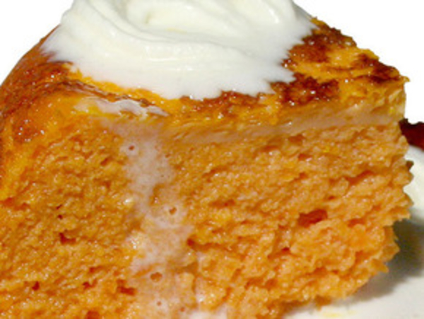 Смешайте морковную массу с корицей, а затем вводите белки небольшими порциями, тщательно перемешивая пюре с белками движениями снизу вверх.