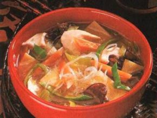 50 г китайской лапши положить в миску, залить кипящей водой, оставить на 3-4 минуты, откинуть на сито, обдать холодной водой, дать стечь, несколько раз порезать острым ножом, положить в суп вместе с грибами и небольшим количеством соевого соуса, довести до кипения, варить 20 минут.