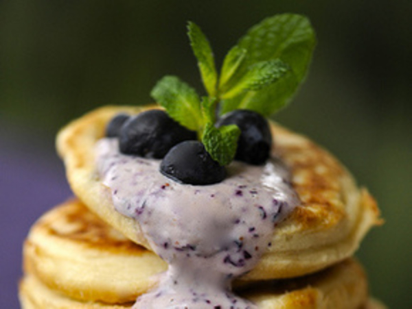В блендере делаем быстрый соус - взбиваем ягоды и обезжиренный йогурт.
