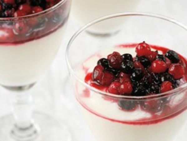 Перед подачей положить в каждый бокал по две столовые ложки ягодной смеси.