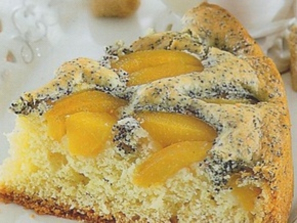 Остальное тесто выложите ровным слоем на прямоугольный противень, выстланный бумагой для выпекания. Сверху выдавите из кондитерского мешочка "решетку" из теста с маком. В каждую образовавшуюся клеточку положите по 2 дольки абрикоса и слегка вдавите в тесто.