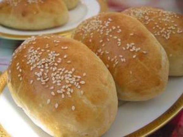 Включить духовку на 180 градусов. Пирожкам дать расстояться минут 10, пока греется духовка, затем смазать их остатками яйца, посыпать кунжутом по желанию.  Поставить в теплую духовку, и выпекать до золотистого цвета.
