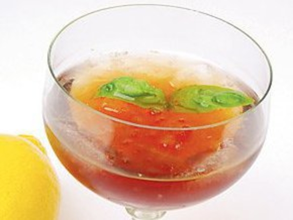 Все ингредиенты взболтайте с помощью шейкера. Украсьте листиками мяты и подавайте со льдом.
