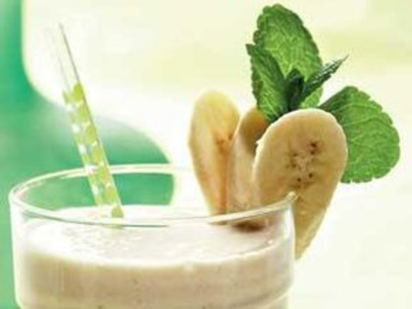 Бананы очистить, нарезать крупными кусками, поместить в чашу-измельчитель блендера. Добавьте карамельный десерт, перемешайте.