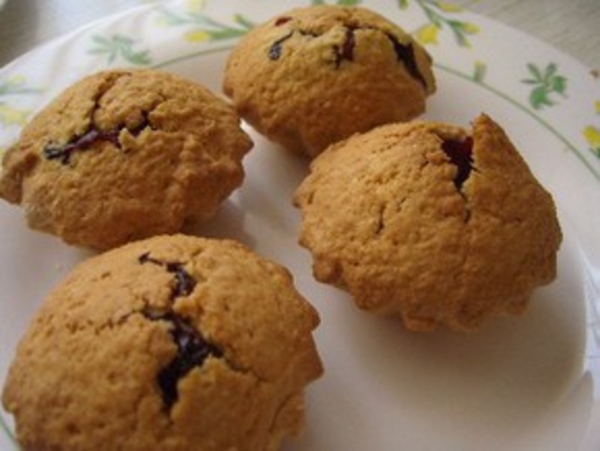 Тонко раскатать, уложить в формочки, сделать несколько проколов в тесте. Положить по ложке варенья (можно добавить немного крахмала), добавить несколько замороженных ягод, сверху сделать крышечку из теста, защипать.