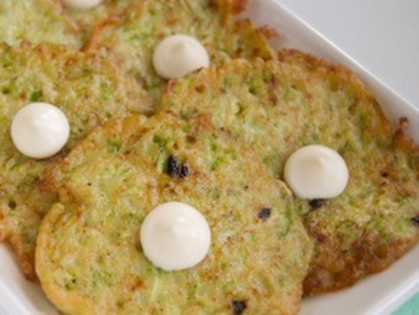 Если кабачки не очень молодые – очистить кожицу. Кабачки натереть на терке, посолить, дать постоять минут 5, слить образовавшийся сок и отжать. Добавить яйца, муку, хорошо перемешать.Жарить оладьи на сковороде на подсолнечном масле, выкладывая ложкой.
