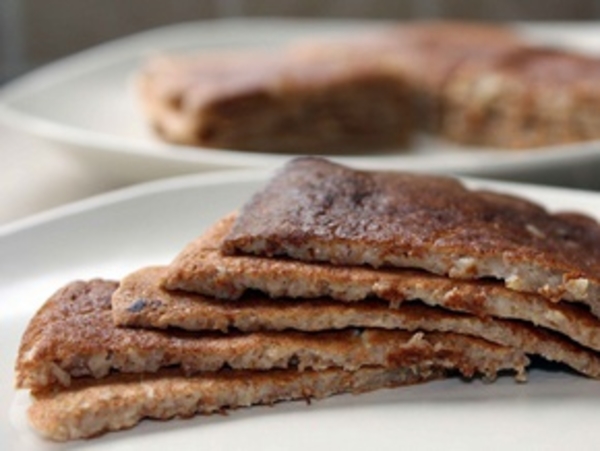 Смешать овсянку, муку, корицу, сахар, соль и яйцо и добавить немного молока. Постепенно добавить оставшееся молоко и хорошо размешать. Оставить тесто набухнуть на 20-30 минут.