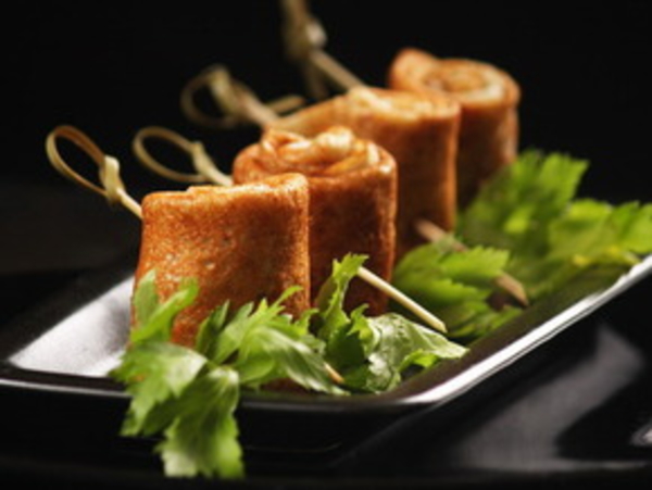 Тесто должно напоминать густую сметану.Выпекать на антипригарной сковороде, чуть смазанной маслом. Блинам дать постоять стопочкой, а потом свернуть в рулетики. Подавала со сметаной и зеленью.
