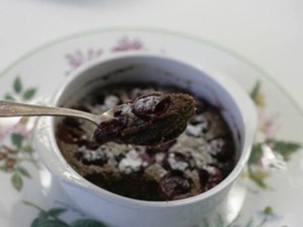 Массу ложкой разложить по формочкам. Сверху, слегка вдавливая, положить вишни. Выпекать при 180С около 25 минут.
