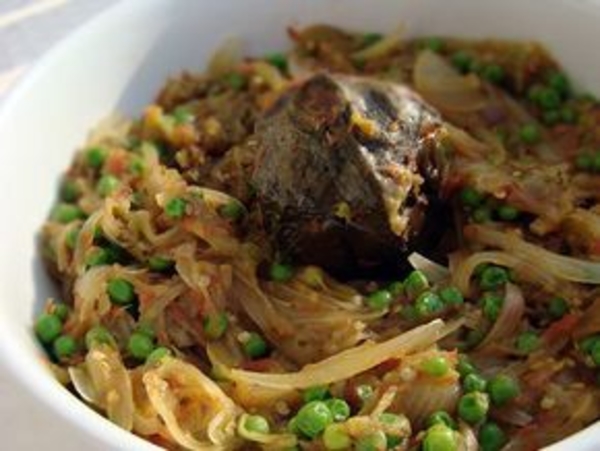 Горошек отварить в подсоленной воде несколько минут, поместить в воду со льдом, чтобы прервать нагрев. Обсушить.