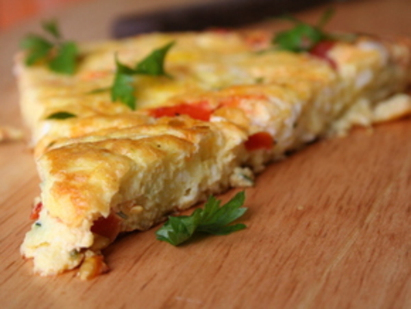 Поджарить на очень слабом огне под крышкой 10 минут. Перевернуть омлет и поджаривать на среднем огне без крышки еще 5-7 минут.