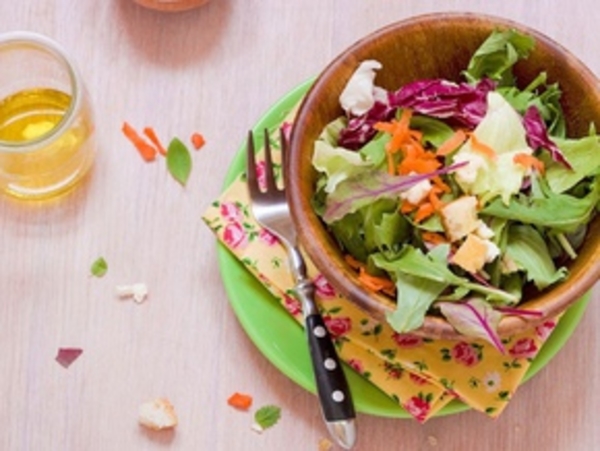 Для заправки смешать оливковое масло и светлый винный уксус в пропорции, которая вам больше нравится, добавить соль и молотый перец.