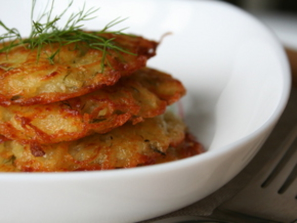 Картофель натереть на крупную терку. Хорошенько отжать. Добавить муку, простоквашу, укроп. Посолить, поперчить.