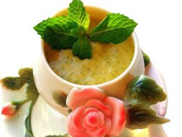 Почистить и нарезать манго и нектарины. Измельчить в блендере вместе с мятой, добавить сливки, розовую воду, мёд, сок 1 лайма, взбить.