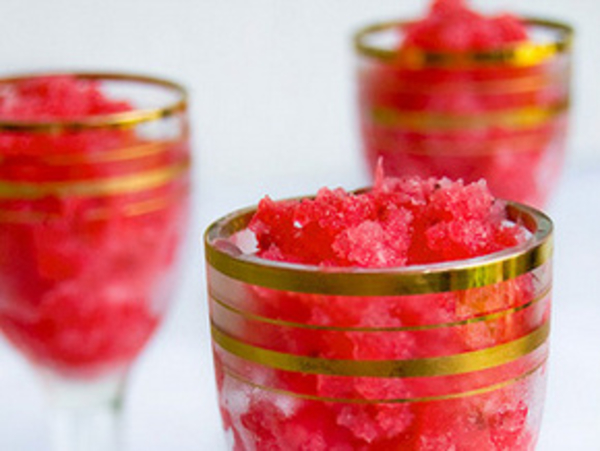 Поместить все в емкость, которая пригодна для замораживания и поставить в морозилку. Быстрота готовности граниты зависит от мощности морозилки и толщины смеси. В процессе заморозки можно несколько раз перемешать все вилкой.