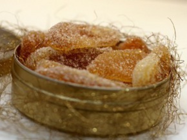 Подсохшие дольки надо обвалять в сахарном песке. Хранить в закрытой коробке.