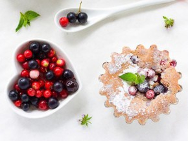 Мучную смесь осторожно всыпать в яичную и перемешать аккуратными движениями. В тесто добавить ягоды, немного перемешать и разложить массу по формочкам.