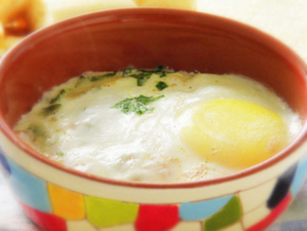 Глазунья с ветчиной и сыром в горшочке